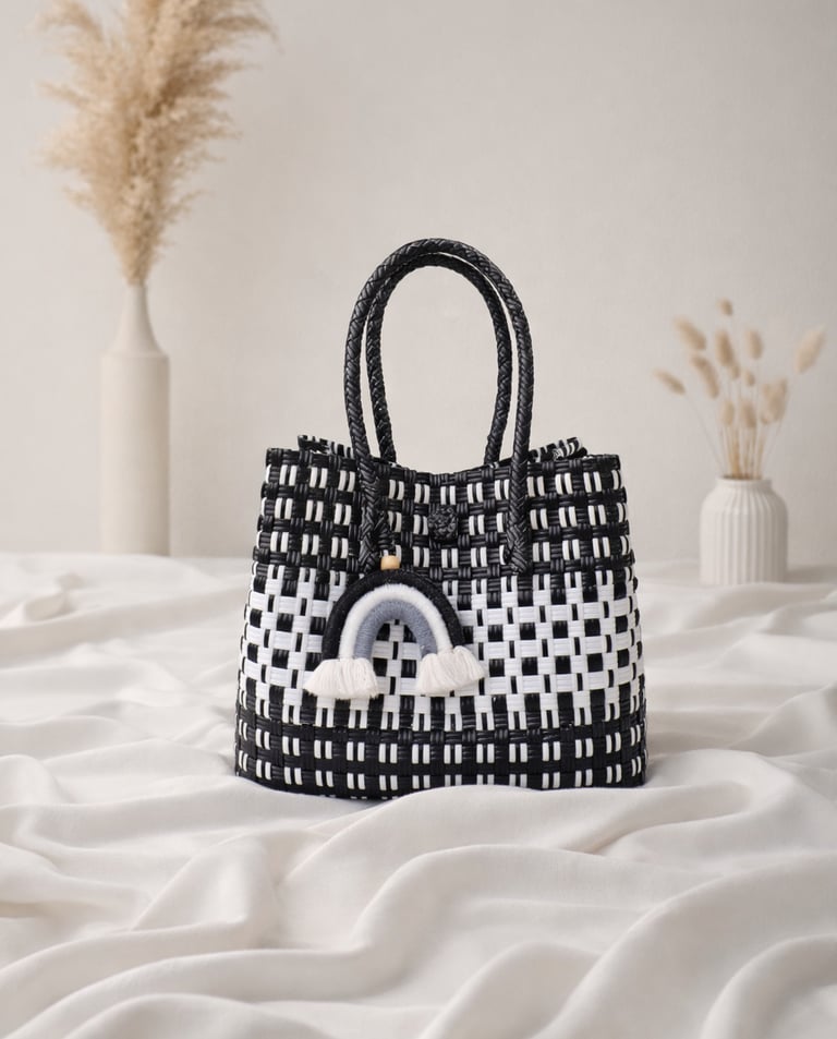 Craftvitas Jali-Jali Handwoven Bag is carefully crafted from high-quality recycled plastic, woven neatly and tightly by skilled artisans to ensure durability and long-lasting use. Featuring a simple yet elegant pattern, this bag offers a unique, modern look while staying environmentally friendly.