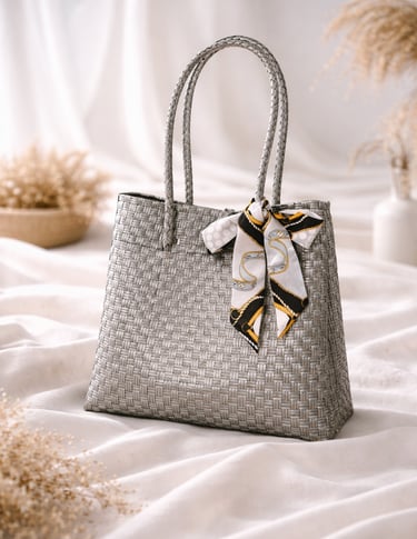 This handmade Jali-style woven plastic bag is crafted from high-quality recycled plastic materials, carefully woven for strength and durability. Featuring a fresh green striped pattern, this bag offers a unique, modern, and eco-friendly look. Perfect for daily use, casual outings, and also suitable as an exclusive handmade souvenir.